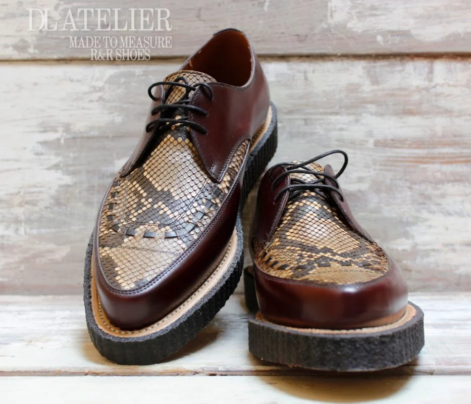 Chez DL, nous sommes des artisans cordonniers indépendants qui créons des creepers et d’autres chaussures spectaculaires conçues pour refléter la philosophie de vie, la vision esthétique, le style et la personnalité de chaque client.